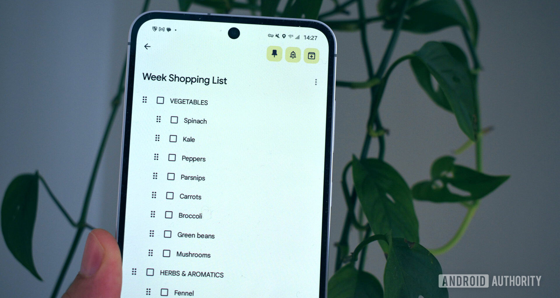 Embora eu use a noção para a ideia de longo prazo e para armazenar peças de texto mais críticas, uso o Google Keep para conteúdo mais imediato. O aplicativo está perfeitamente criado para esse uso e, graças à sua integração com os assistentes de voz do Google, posso gravar e salvar notas usando o Nest Mini na minha cozinha, via Android Auto no meu carro ou através de uma sessão ao vivo de Gemini. Usei o último para trazer alguma aparência de ordem aos meus pensamentos ou idéias dispersas. Também utilizo seus widgets para minhas tarefas diárias e listas de compras semanais, compartilhando-as com meu parceiro e seu recurso de notificação baseado em localização para destacar uma nota quando estou em um local específico. Keep é a sala de máquinas da minha configuração de produtividade.