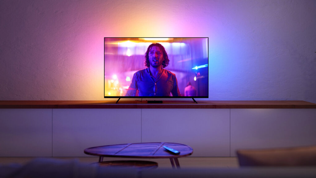 O Philips Hue Gradient Lightstrip sincronizado com uma TV