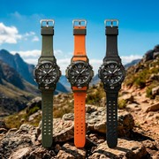Projetados para equipes de resgate, guardas florestais e operações em ambientes extremos, os relógios combinam caixa em resina reforçada com fibra de carbono e estrutura pensada para absorver impactos. O bisel traz três camadas de resina com inserções em carbono, enquanto botões selados e filtros especiais ajudam a impedir a entrada de poeira e lama.