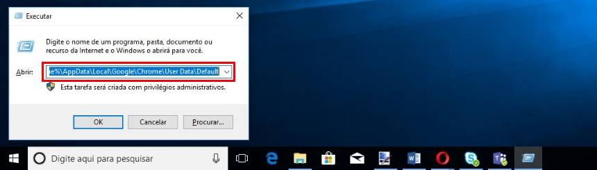 1. Aperte as teclas “Win + R” para abrir a janela do executar e entre nesta pasta: C:Users%username%AppDataLocalGoogleChromeUser DataDefault;”