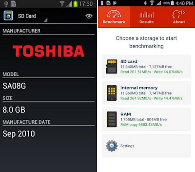 O Android possui um pouco menos de opções para o teste em comparação ao Windows. Ainda assim, o app SD Insight consegue trazer informações interessantes referentes ao cartão. Já para benchmarks, a opção fica a cargo do A1 SD Bench.