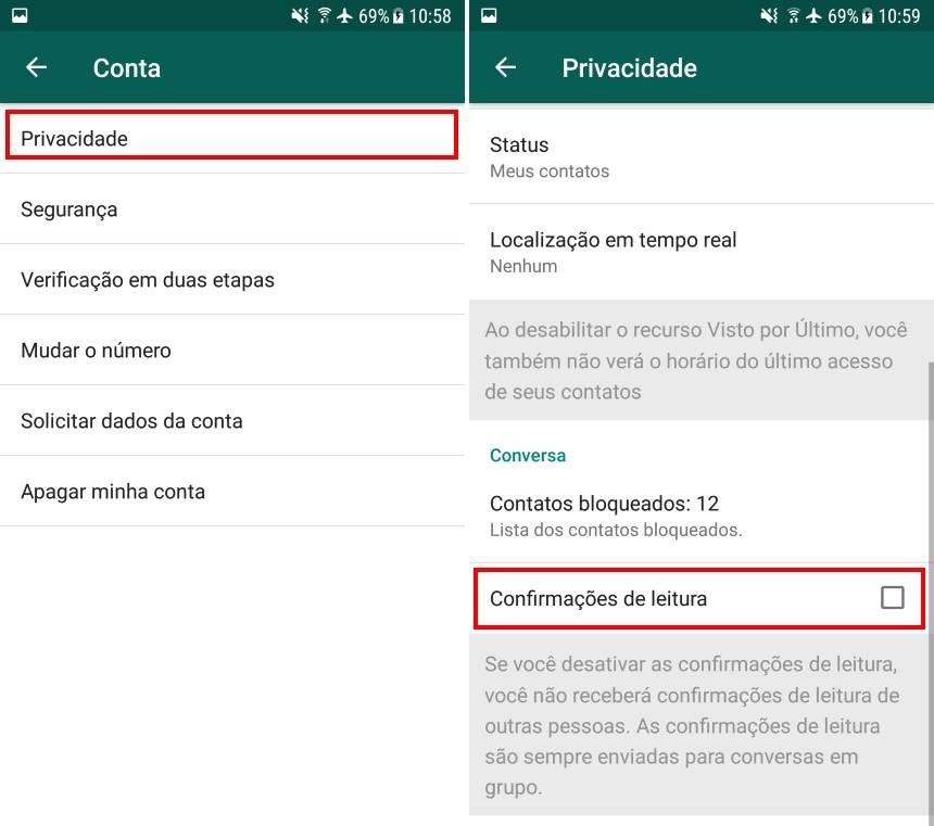 3. Entre em “Privacidade” e desmarque a opção “Confirmações de leitura”.