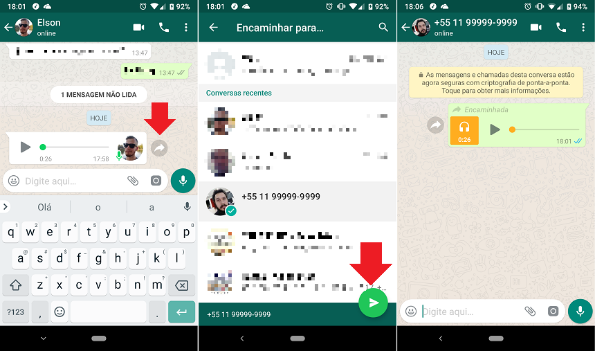 4. Encaminhe os áudios recebidos para esta conversa e os escute