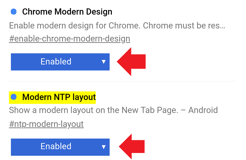 2. Entre em chrome://flags/#ntp-modern-layout e ative a opção “Enabled”