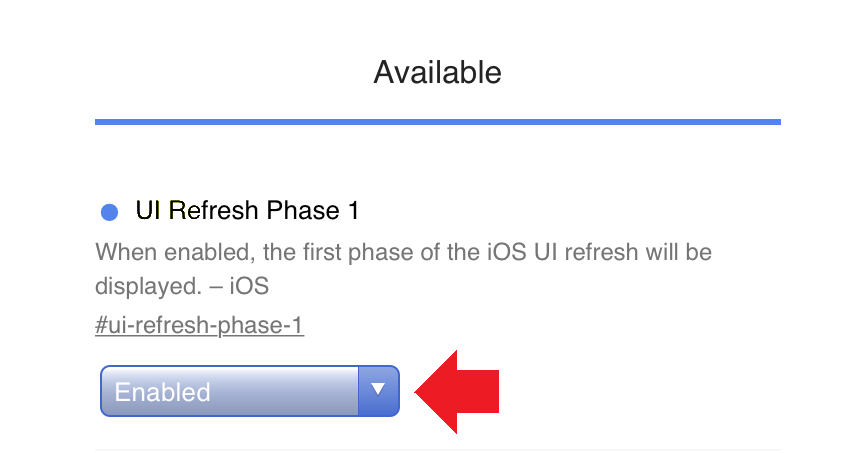 2. Procure por “UI Refresh Phase 1” e selecione a opção “Enabled”