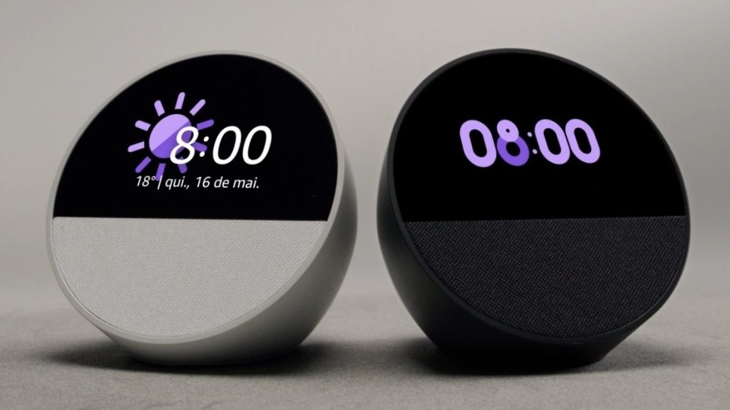 Finalizando a categoria Amazon Echo, o Echo Spot sai hoje por R$ 445 no Pix ou R$ 469 parcelado até 12x sem juros (lançado por R$ 579). Esse modelo se destaca pelo design tão compacto quanto do Echo Pop, com a adição de uma telinha que ocupa metade da parte frontal e funciona como mostrador de relógio inteligente.