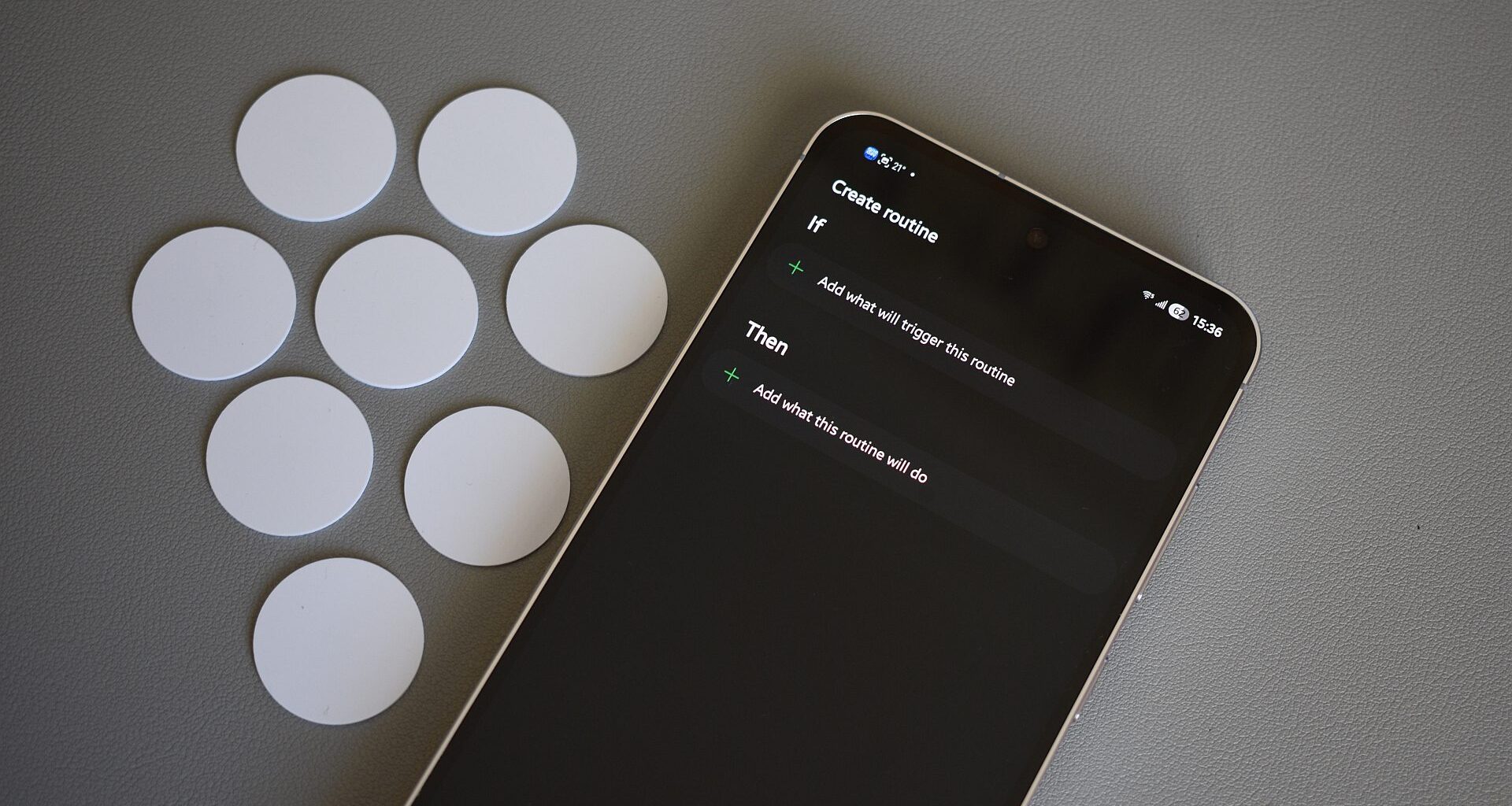 Este projeto exigirá tags NFC e telefones Samsung, mas comprar alguns dos primeiros não é uma má ideia. Mesmo que tenham desaparecido do zeitgeist tecnológico, eles são incrivelmente úteis para casos de uso além das minhas necessidades aqui. Tenho certeza de que seria possível construir algo semelhante com Automate, Tasker ou outra ferramenta de automação, mas ainda não tentei fazer isso sozinho. O software da Samsung torna esse truque muito mais fácil.