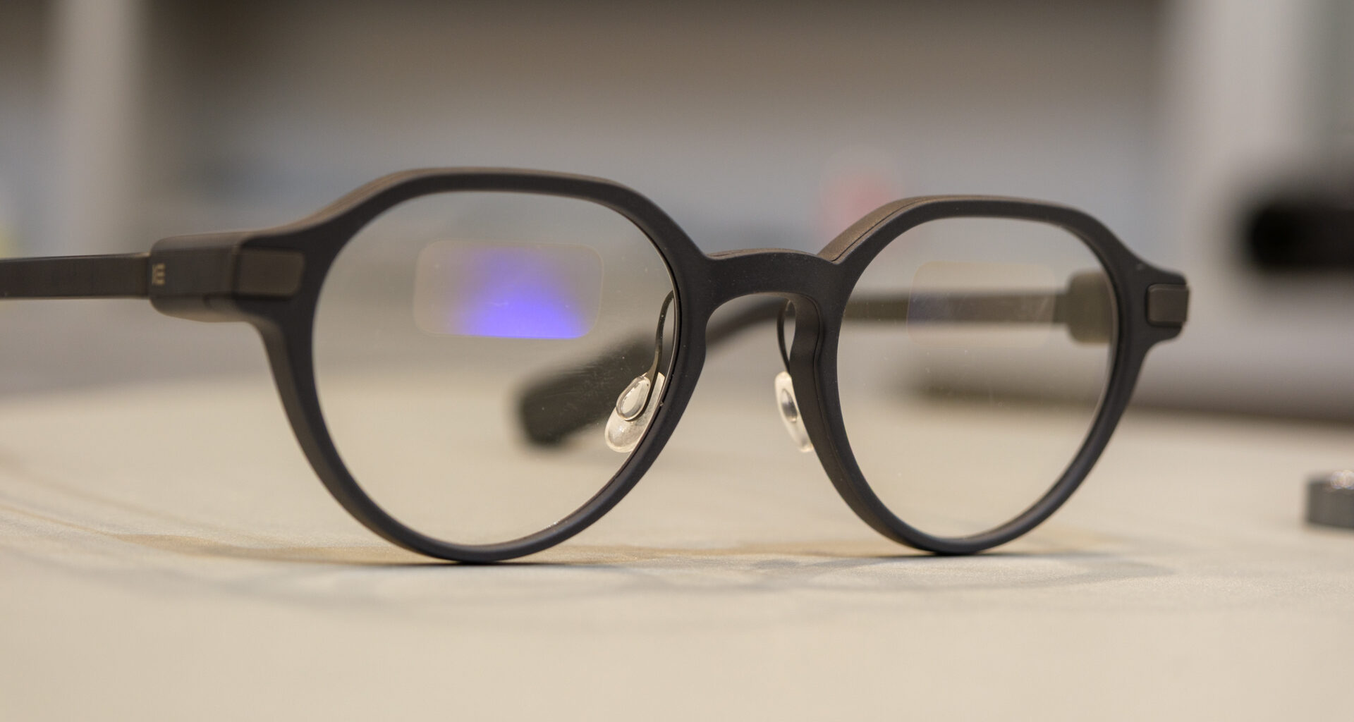 Desde o momento em que coloquei o Even G2, parecia que estava usando óculos normais, a ponto de colocá-los muito perto dos olhos. A princípio, pensei que devia estar fazendo algo errado, pois não conseguia ver os campos de texto verdes iluminados. No entanto, um rápido deslize pelo meu nariz e eu estava no negócio. Comecei a redimensionar as plaquetas para um ajuste perfeito e ouvi Will detalhar algumas das opções de design da Even Realities.