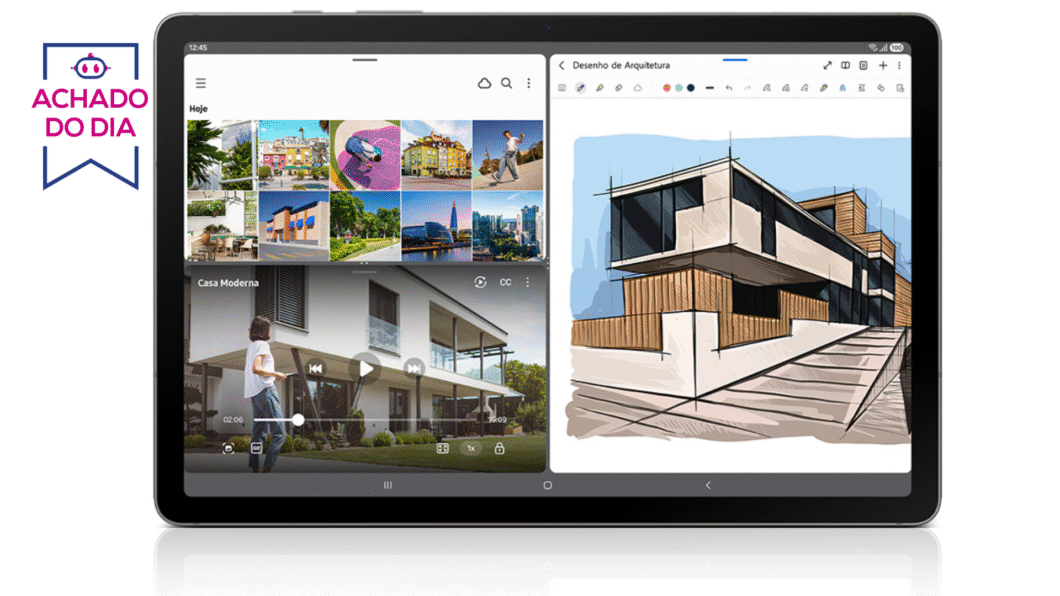 Ainda no fator produtividade e até estudos, o tablet da Samsung acompanha caneta S Pen na caixa, que oferece uma experiência de escrita precisa e fluída, ideal para anotações, desenhos e edição de documentos. Com baixa latência, ela proporciona uma interação mais natural com a tela.