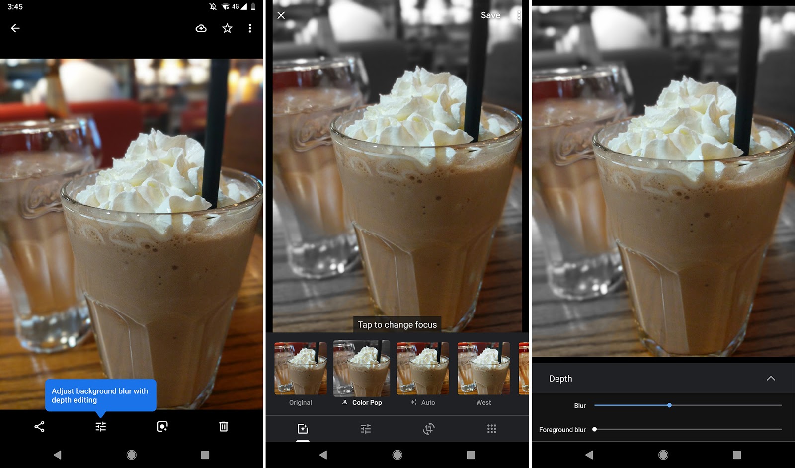 O chamado “modo retrato” do Google Fotos permite ajustar o quão borrado o plano de fundo pode ficar depois que a imagem já foi registrada. Outra novidade é o Color Pop, um recurso anunciado no começo do ano que permite isolar um objeto da foto e mantê-lo colorido, enquanto todo o resto fica em preto e branco.