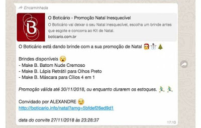 A empresa de cibersegurança PSafe investigou o golpe do WhatsApp que promete brinde de Natal do Boticário e afirma que a sofisticação da fraude pode levar muitos usuários a acreditar que a promoção é verdadeira.