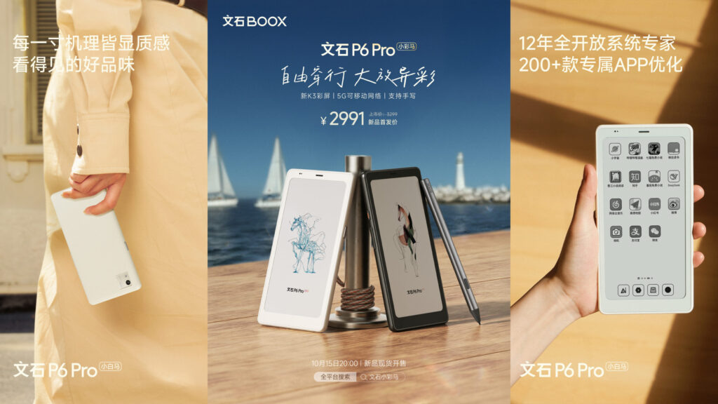 - A BOOX lançou oficialmente duas versões do BOOX P6 Pro na China: um modelo preto e branco e um modelo colorido.