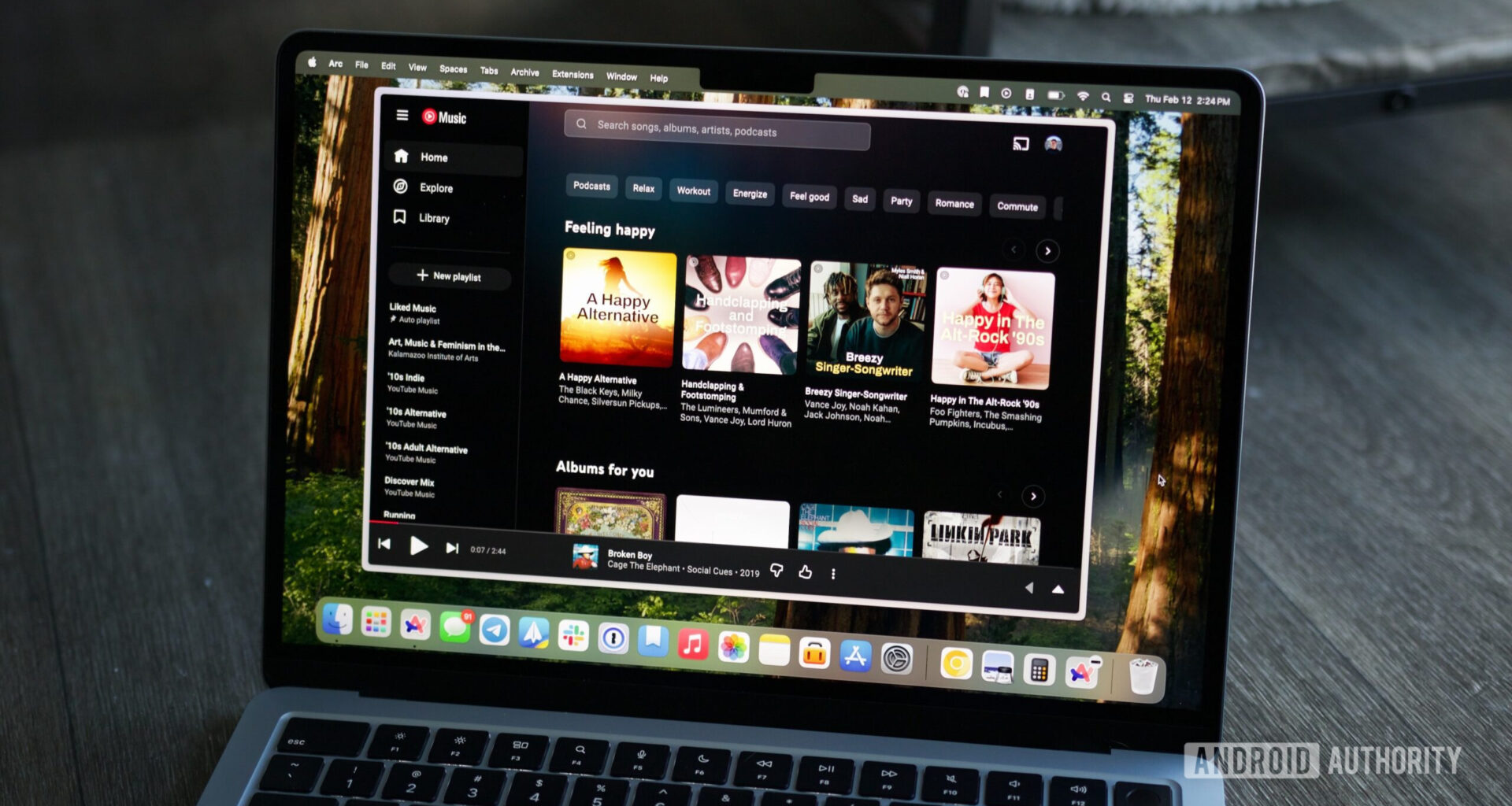 Site do YouTube Music para desktop rodando em um laptop.