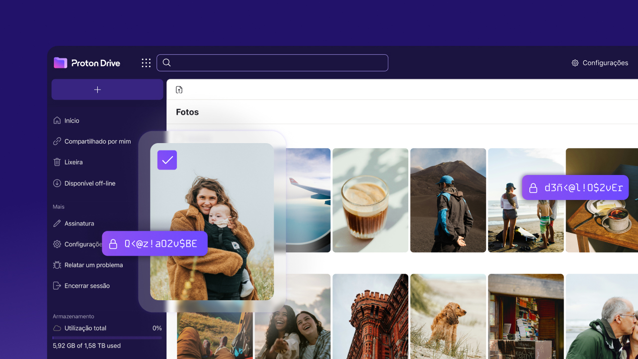 O Proton Drive também é uma opção prática para backup de fotos: com o app para Android e iOS, você pode ativar o envio automático de fotos para a nuvem, mantendo sua galeria protegida caso perca o celular, troque de aparelho ou precise restaurar arquivos.