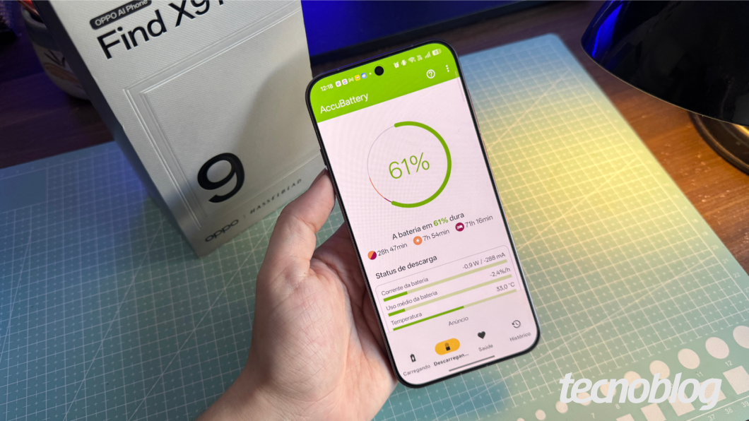 AccuBattery mostrando expectativa de bateria no Oppo Find X9 Pro (Imagem: Ana Marques / Tecnoblog)