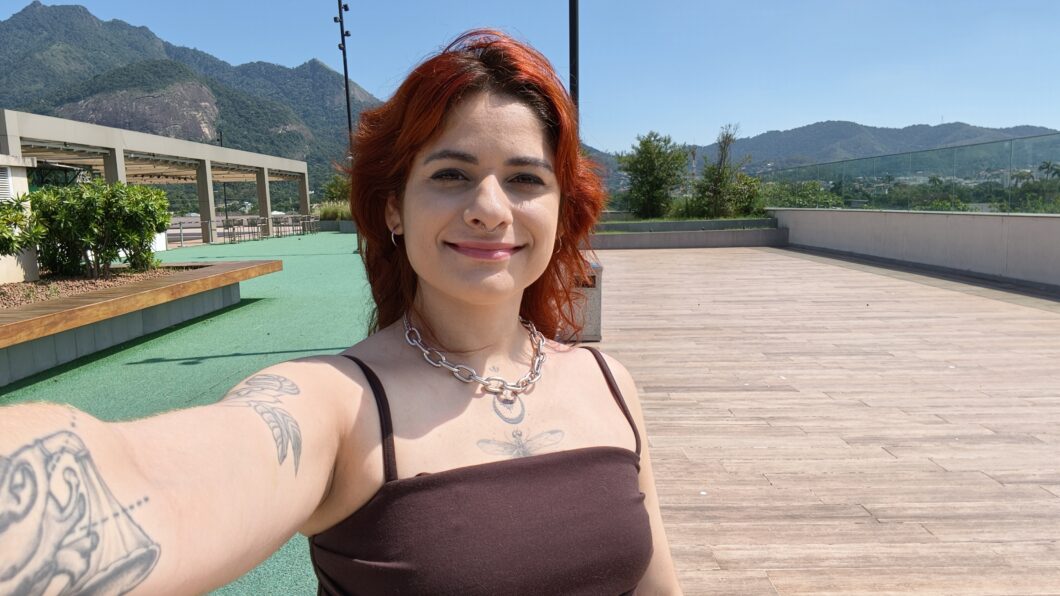 O smartphone tem brilho típico de 800 nits, e chega a 1800 nits no modo de alto brilho (HBM), garantindo boa visibilidade mesmo quando você usa o celular sob o sol forte, o que eu pude comprovar durante os testes. Já o brilho máximo em pico é de 3.600 nits, para conteúdos HDR, por exemplo, melhorando o contraste e destacando áreas iluminadas da imagem.