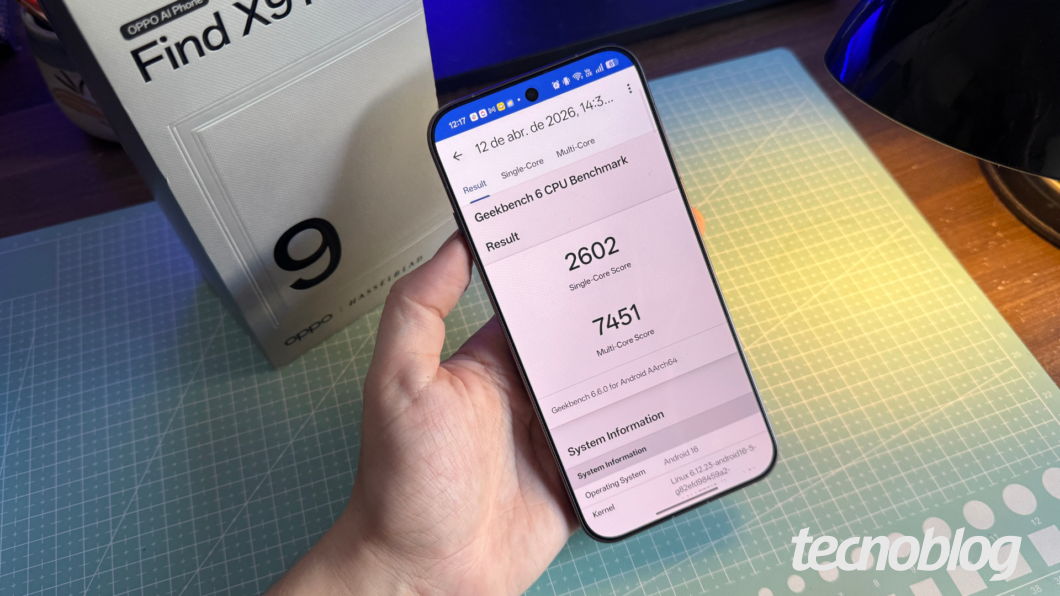No Geekbench 6, o celular da Oppo chegou a 2602 no teste single-core e 7451 em multi-core. Já o teste de GPU resultou em 24454 pontos. Para fins de comparação, o Galaxy S26 Ultra com Snapdragon 8 Elite Gen 5 for Galaxy fez 3592 em single-core e 10964 em multi-core, além de 24715 em GPU OpenCL.