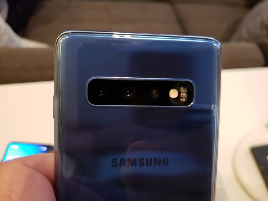 O Galaxy S10 conta com três câmera na sua parte traseira que possuem 12 MP com abertura variável de f/1.5-2.4, 12 MP com abertura de f/2.4 e 16 MP com abertura f 2.2. Essas câmeras são capazes de realizar gravações nas resoluções 2160p a 60 quadros por segundo, 1080p a 240 quadros por segundos e 720p a 960 quadros por segundo. Além destas especificações é preciso destacar que elas também possuem um flash LED, PDAF HDR e estabilização óptica OIS dupla, ou seja, duas de suas câmeras contam com este recurso.