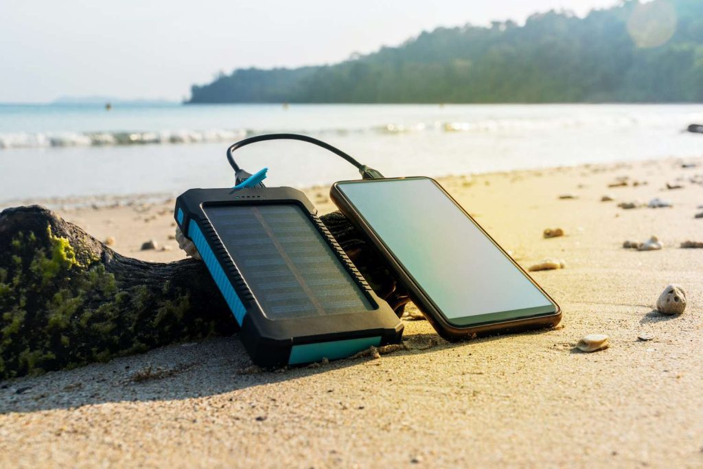 Para o uso durante o dia, uma excelente opção é o carregador portátil movido a energia solar. Esse acessório consegue recarregar um celular em 2 a 3 horas utilizando a bateria interna ou de 3 a 5 horas por meio do painel solar. Com uma capacidade de carga de até 38.000 mAh e um painel solar de 1,2 W de potência, é uma solução eficiente. A bateria embutida pode ser recarregada tanto em tomadas quanto através do painel solar, posicionado à frente do acessório, logo abaixo do LED indicador do nível da bateria.