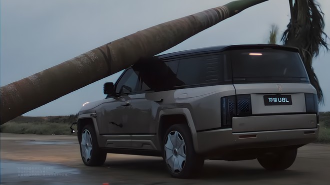 O Yangwang U8L da BYD mostrou resistência de forma bastante radical por meio de um teste. No caso, a própria fabricante chinesa deixou que uma árvore que pesa em torno de duas toneladas caísse sobre o seu SUV de luxo. Apesar disso, o modelo não só continuou funcionando, como teve poucos danos.