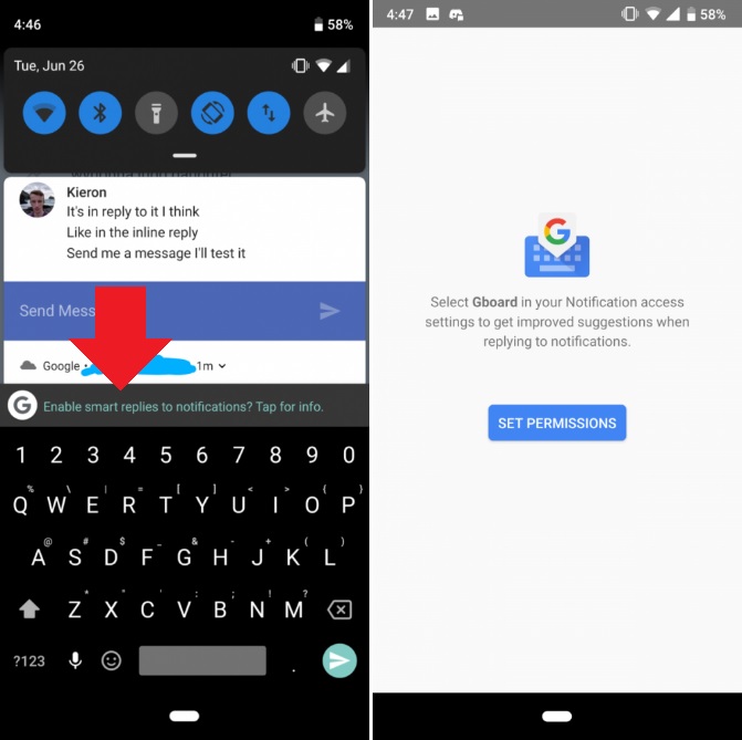 A novidade, encontrada por usuários no fórum XDA-Developers, faz com que o teclado do Android solicite acesso às notificações do usuário. A partir daí, o app passa a reconhecer o conteúdo das mensagens que você recebe e pode sugerir respostas rápidas com base no que foi recebido.