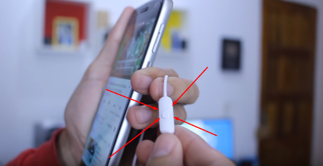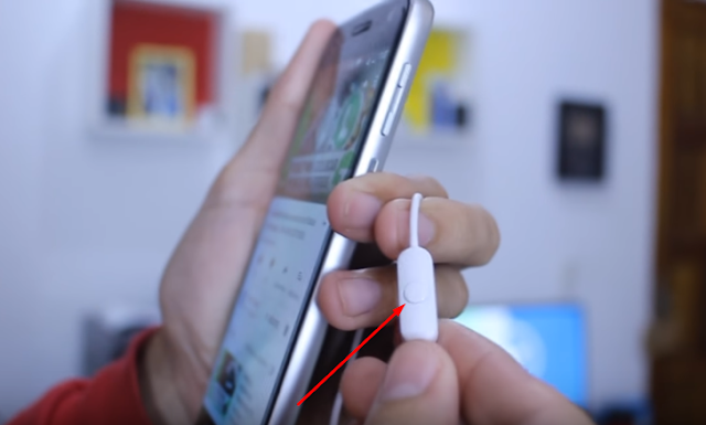 Tendo feito o passo anterior basta plugar seu fone na saída P2 de seu aparelho, logo em seguida basta retornar à sua tela inicial e clicar sobre o batão que há em seu fone de ouvido, desta forma o vídeo começará a ser reproduzido em segundo plano. Observem na imagem abaixo o botão que você deverá apertar para conseguir reproduzir o vídeo, esse é o mesmo botão que utilizamos para atender chamadas, e provavelmente o único que há em seu fone de ouvido.