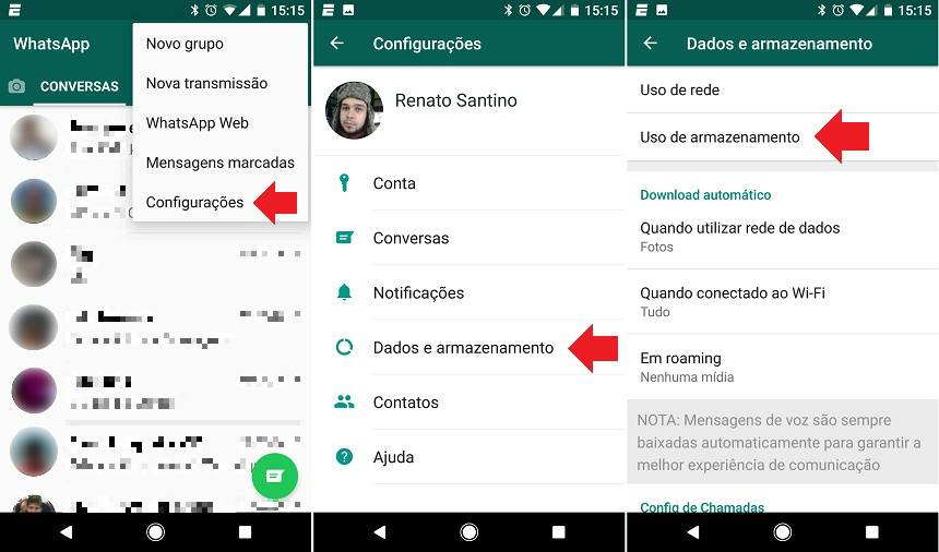 A função foi detectada já na versão 2.17.340 do aplicativo em beta (se você quer saber como baixar o WhatsApp beta, clique neste link), liberada em atualização recente. Para acessá-la, basta tocar no ícone dos três pontinhos, entrar em “Configurações”, pressionar “Dados e Armazenamento e ir até “Uso de armazenamento”.