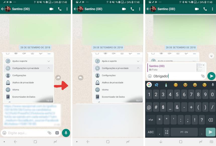 Disponível na versão 2.18.282 do aplicativo de testes, o “arraste para responder” promete agilizar a vida do usuário. Ao invés de dar dois ou três toques na tela, o usuário precisa apenas movimentar o balão que pretende responder da esquerda para a direita. A conversa original aparecerá na caixa de digitação.