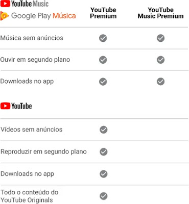 O Google está lançando dois serviços de assinatura no Brasil. O YouTube Music Premium é um concorrente do Spotify que permite ouvir todas as músicas do YouTube — incluindo remixes e apresentações ao vivo — sem anúncios, inclusive offline. É possível tocá-las em segundo plano no iPhone e Android. Enquanto isso, o YouTube Premium (antes conhecido como YouTube Red) vai além: ele permite baixar qualquer vídeo para assistir offline, removendo as propagandas.